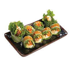 S/. 27.00Envuelto en papel de arroz relleno de pollo teriyaki, queso crema y verduras de estación. Bañadas en salsa viet agridulce con un toque picante.