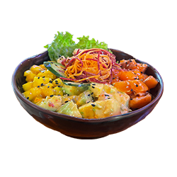 S/. 36.00Tartare de salmón en salsa dulce picante, langostinos en salsa de mantequilla con ajo, acompañado con verduras y frutas de estación dulce sobre cama de shari (arroz de sushi).